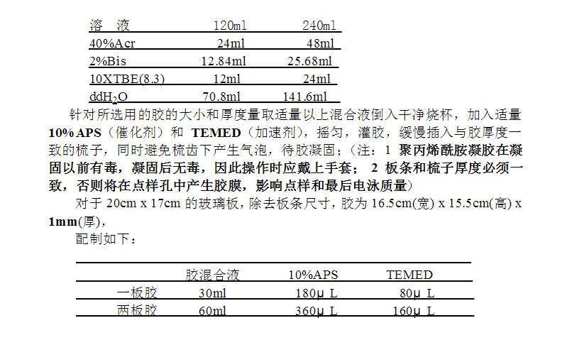 4.4 配膠(8%非變性聚丙烯酰胺凝膠,Acr:Bis=37.5:1)、灌膠;