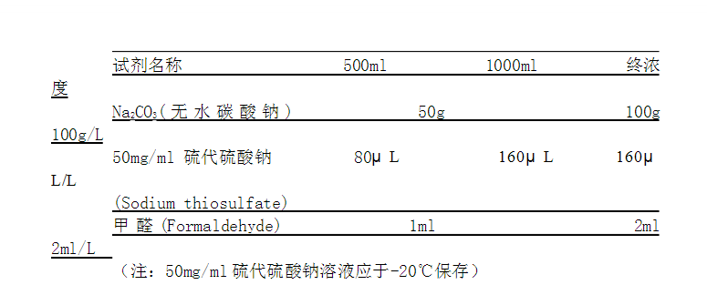 于4℃,用時取出;顯影液在4℃長期放置容易結晶,一般使用前1-2天配制即可,顯影液配制方法如下: