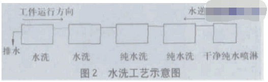 磷化后的水洗主要是為了清洗干凈工件表面、內腔所帶有的磷化液、磷化渣、金屬離子及其它雜質離等,同時保證工件清洗后的滴水電導率滿足