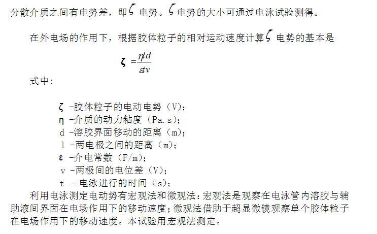 1. 學會溶膠制備的基本原理,并掌握溶膠制備的主要方法。 2. 利用界面電泳法測定AgI溶膠的電動電位。