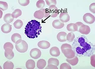嗜堿性粒細(xì)胞是具有葉狀細(xì)胞核和顆粒狀細(xì)胞質(zhì)的細(xì)胞,只能被亞甲藍(lán)染色,亞甲藍(lán)是堿性的。這些細(xì)胞占白細(xì)胞總數(shù)的不到 1%。嗜堿性粒細(xì)胞是非吞噬細(xì)胞,但積極參與過敏反應(yīng)。顆粒狀細(xì)胞質(zhì)釋放的藥理活性物質(zhì)在某些過敏反應(yīng)中起重要作用。